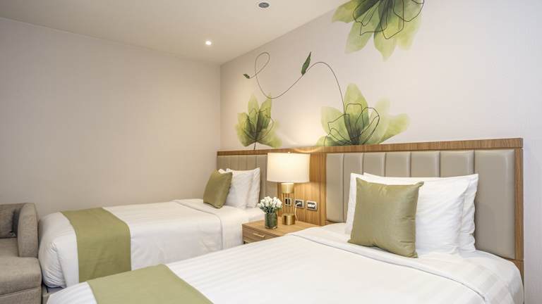 Die Zimmer des Hotels sind klimatisiert und mit einem Doppelbett, Queensize- oder Kingsize-Bett ausgestattet. Zur Standardausstattung gehören ein Safe, eine Minibar, ein Schreibtisch, ein Telefon und ein TV-Gerät mit Satellitenempfang. Die privaten Badezimmer sind mit Dusche und Badewanne, Haartrockner sowie einem Telefon ausgestattet. Zusätzlich stehen rollstuhlgerechte Zimmer zur Verfügung.