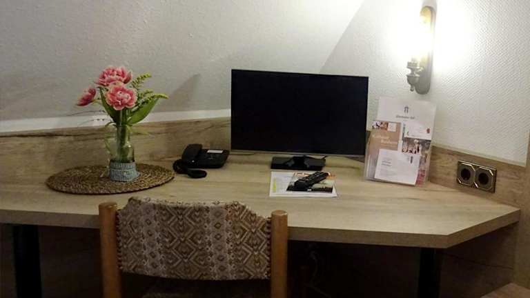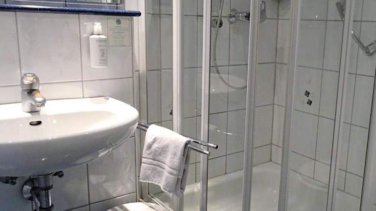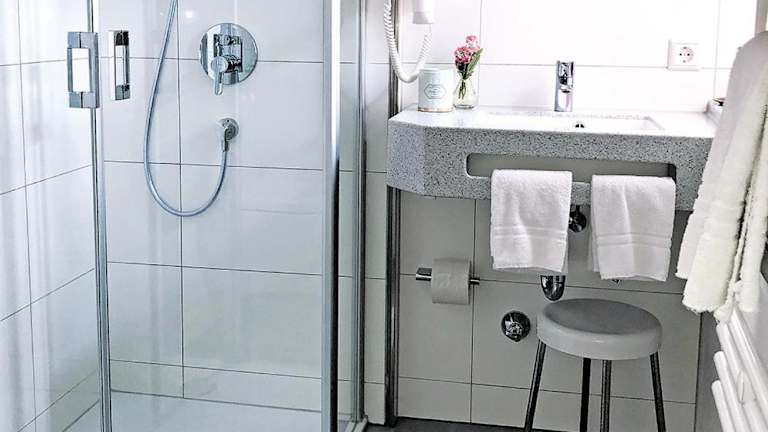 Die Gästezimmer in der Unterkunft Hotel Eberbacher Hof sind mit einem TV und einem Haartrockner ausgestattet.