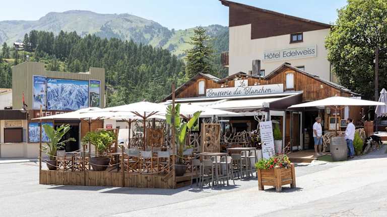 Das Hotel Edelweiss befindet sich am Hauptplatz von Auron, direkt neben einer Seilbahn, welche die Gäste innerhalb von 2 Minuten zu den Pisten bringt. Die Umgebung ist geprägt von einer malerischen Berglandschaft und bietet zahlreiche Freizeitmöglichkeiten.