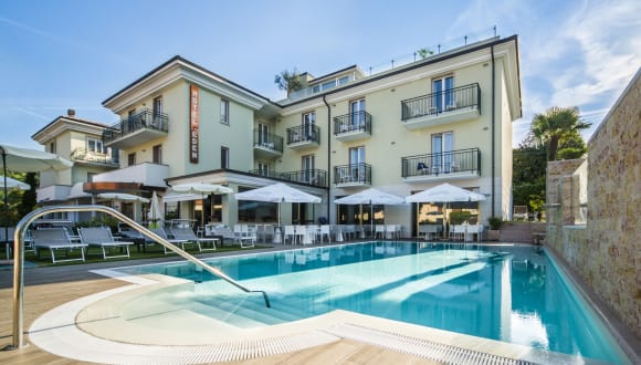 Hotel Eden Garda ****, komplett renoviert, befindet sich ca. 1 km vom Garda See und den wichtigsten Dienstleistungen. Es bietet einen kostenlosen Shuttle-Service für die Gäste in der Zeit von Mai bis September. Alle Zimmer sind geräumig, hell und geschmackvoll eingerichtet. Sie verfügen alle über Balkon, Bad mit Dusche, Haartrockner und kostenlosen Toilettenartikeln, Sat-TV, kostenlosen Wi-Fi, Klimaanlage, Minibar, Safe, Direktwahltelefon, elektrischen Wasserkocher für Tee und Kaffee. Das Hotel verfügt über Lift, einen eigenen Parkplatz und Garage, TV-Raum und ein Konferenzraum. Entspannen Sie im unseren Garten mit dem Pool und dem neuen und modernen Snackbar Service oder auf der Sonnenterrasse mit Blick auf den Garda See und Hydromassage-Pool. In dem klimatisierten Restaurant können Sie am Morgens ein reichhaltiges Frühstücksbuffet finden. Unser Küchenchef wird Sie mit einer reichen Auswahl an mediterranen und internationalen Rezepte überraschen, zusammen mit ausgewählten Weinen aus unserem Weinkeller.