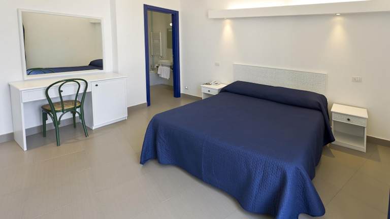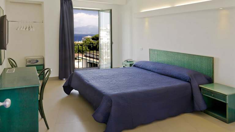 Die Zimmer sind im mediterranen Stil eingerichtet und verfügen über eine Klimaanlage, eine Minibar und Sat-TV. Die meisten Zimmer bieten einen Balkon oder eine private Terrasse mit Blick auf das Meer. Jedes Zimmer ist mit einem Doppelbett oder einem Queensize-Bett ausgestattet. Zusätzliche Annehmlichkeiten wie ein Safe, ein Telefon mit Direktwahl und kostenloses WLAN (gegen Gebühr) sind ebenfalls vorhanden. Familienzimmer und rollstuhlgerechte Zimmer sind ebenfalls buchbar.