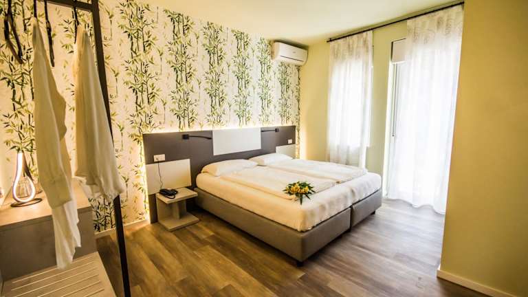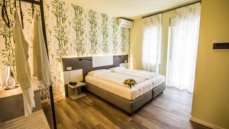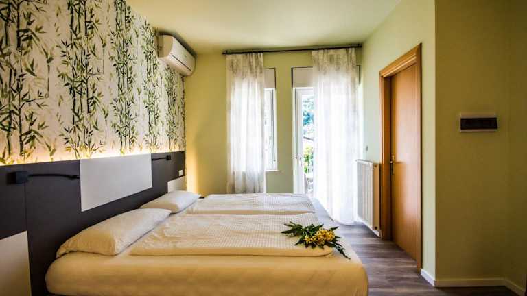 Die klimatisierten Zimmer im Hotel Eden sind mit Sat-TV und einem Balkon ausgestattet, der Blick auf den Gardasee bietet. Es werden zudem schallisolierte Zimmer und Familienzimmer angeboten. Die Badezimmer sind rollstuhlgerecht und barrierefrei eingerichtet.