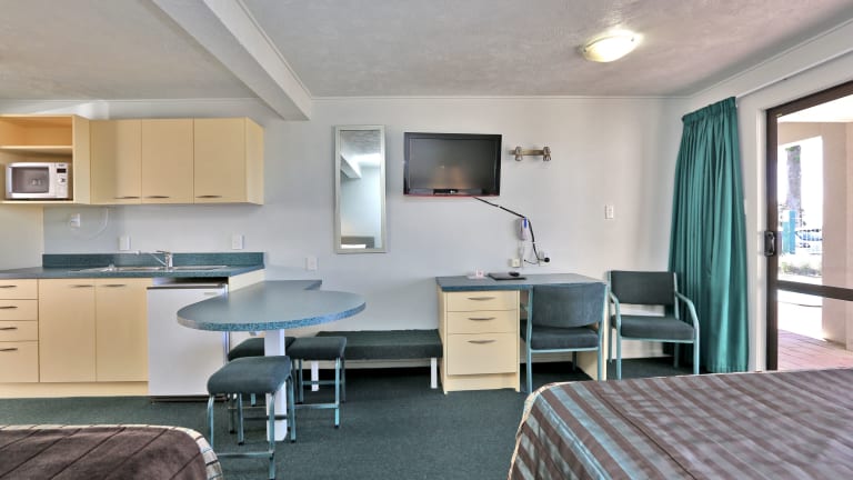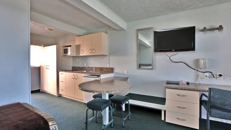 Die Zimmer des Edgewater Motor Lodge bieten alle einen Blick auf das Meer und sind mit einer Küchenzeile ausgestattet, die unter anderem eine Mikrowelle, einen Kühlschrank und Tee-/Kaffeekocher beinhaltet. Jedes Studio verfügt zudem über Heizung, Bügeleisen und einen Flachbild-TV mit Satellitenkanälen.