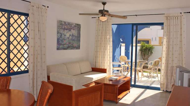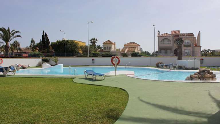 Gepflegte, schön angelegte Appartmentanlage, von der Größe überschaubar. Es handelt sich um zweistöckige Bungalows, unten mit Terrasse und kleinem Garten, oben mit Balkon und Dachterrasse, jeweils möbliert inkl. Liegen. Die Anlage ist schon ein bisschen älter, aber in gutem Zustand. Die Appartments sind sauber, bei uns waren die sehr netten Putzfrauen 2x wöchentlich da. Zu unserer Reisezeit waren viele Familien und Ältere da, auch einige jüngere Paare, war ruhig, kein Partyhotel, vorwiegend spanische Gäste. Am…