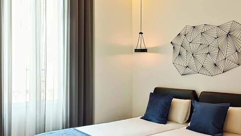 Die Zimmer sind mit Klimaanlage, Heizung, einem Balkon (in den meisten Zimmern), einem Doppelbett und einem Sofabett ausgestattet. Weitere Annehmlichkeiten umfassen einen Safe, eine Minibar, WLAN (ohne Gebühr), ein TV-Gerät, einen Haartrockner, Bademäntel und Hausschuhe. Die Badezimmer verfügen über eine Dusche und eine Badewanne bzw. Whirlwanne. Es werden auch barrierefreie Badezimmer angeboten.