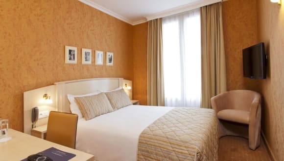 Die Zimmer im Hotel Elysees Opera sind schallisoliert und verfügen über einen 43-Zoll-Flachbild-TV mit Kabelkanälen und kostenfreies WLAN. Jedes Zimmer ist schlicht und modern eingerichtet und bietet ein eigenes Badezimmer mit Haartrockner. Einige Zimmer verfügen über einen Balkon, der einen schönen Blick auf die Umgebung bietet.