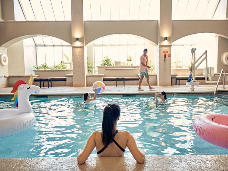 Das Hotel verfügt über einen beheizten Innen- und Aussenpool sowie einen Fitnessraum. Den Gästen stehen zahlreiche sportliche Aktivitäten zur Verfügung, darunter Velofahren, Tennis, Minigolf, Golf und Reiten. Ein Wellnessbereich mit Sauna und Whirlpool sorgt für zusätzliche Erholung. Animationsprogramme und Live-Musik werden ebenfalls angeboten.