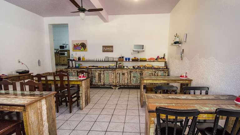 Im Hotel Engenho wird täglich ein Frühstücksbuffet mit saisonalen Früchten, Säften und Brötchen angeboten, wodurch die Gäste gut in den Tag starten können.