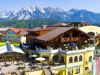 Ski in Ski out - direkt an den Pisten und Liften der 4 Berge Skischaukel Schladming Dachstein, Langlaufloipen in der Nähe, Winterwanderwege direkt vom Hotel aus Im Sommer Ebike Verleih, Wanderbus hält direkt vorm Hotel, unzählige Wanderwege und Bikerouten führen direkt am Hotel vorbei, Golfplatz in der Nähe SKY - Spa über den Dächern von Rohrmoos mit Finnischer Sauna, Infrarotkabinen, Dampfsauna & Bio-Kräuter-Sauna. Massagen-/Kosmetikbehandlungen möglich