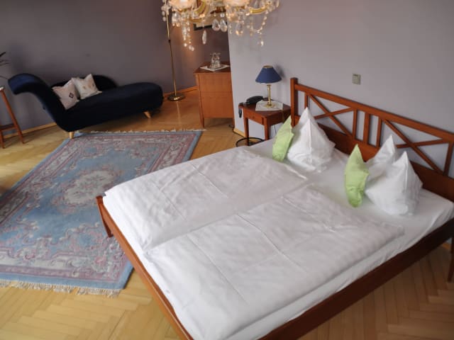 Neben den stilvoll und sehr individuell eingerichteten Zimmern steht den Gästen außerdem eine romantische „Brahms-Suite“ zur Verfügung, benannt nach dem musikalischen Entdecker des wohl bekanntesten Bewohners des Hauses, dem Klarinettisten Richard Mühlfeld. Denn nicht umsonst widmete Brahms dem begnadeten Musiker der Meininger Hofkapelle eigens ein Klarinettenquintett, welches Mühlfeld in der Folgezeit weltweit berühmt machte.