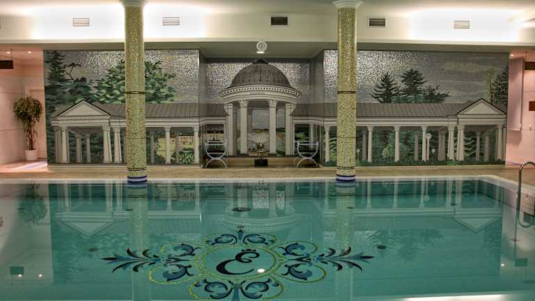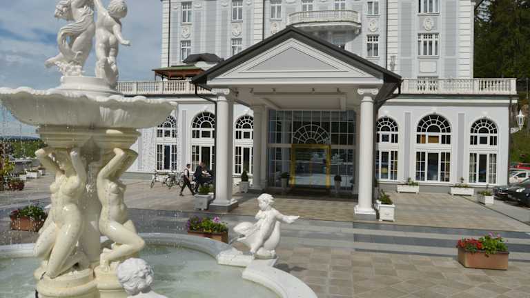 Das Hotel Esplanade Spa & Golfresort befindet sich in Marienbad, einer Stadt bekannt für ihre heilenden Mineralquellen und ihr historisches Ambiente. Die Umgebung lädt zu Spaziergängen und Ausflügen ein, während die atemberaubenden Aussichten die Gäste erfreuen.