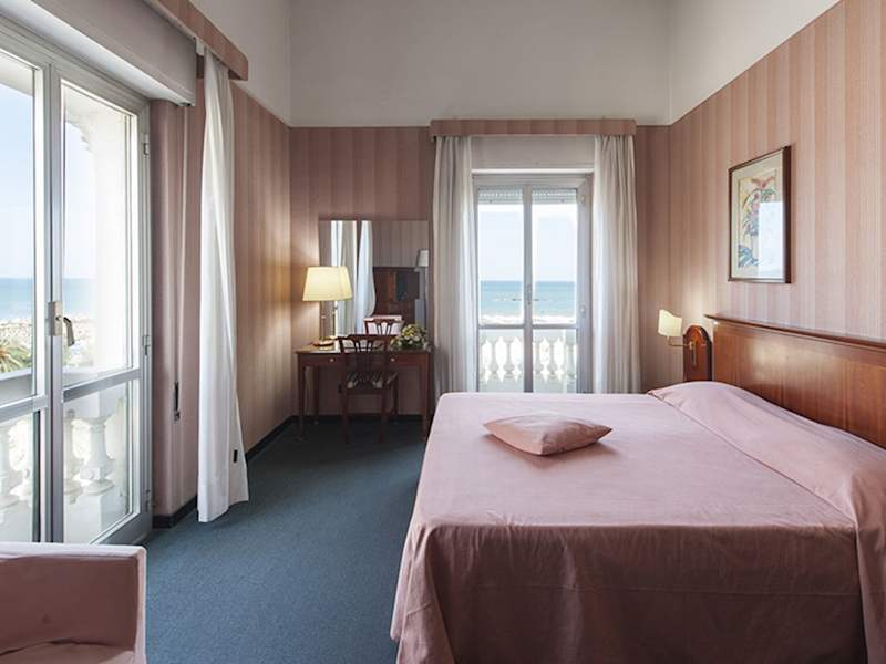 Die Zimmer sind klassisch eingerichtet und bieten ein angenehmes Raumklima dank Klimaanlage und Heizung. Viele Zimmer verfügen über Meerblick. Die Ausstattung beinhaltet ein Doppel-, Queensize- oder Kingsize-Bett, einen Safe, eine Minibar, einen Schreibtisch, Sat-TV und kostenloses Wifi. Die Badezimmer sind mit Dusche, Badewanne und Bidet ausgestattet, und Kosmetikartikel sind vorhanden. Es gibt rollstuhlgerechte Zimmer mit barrierefreiem Badezimmer.