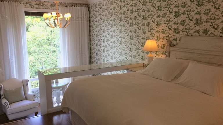 Die einladenden Suiten im Hotel St. Hubertus sind mit klassischen Holzböden und hochwertigen Stoffen ausgestattet. Alle Zimmer verfügen über Klimaanlage, einen LCD-TV und bieten einen Blick auf die grünen Hügel.
