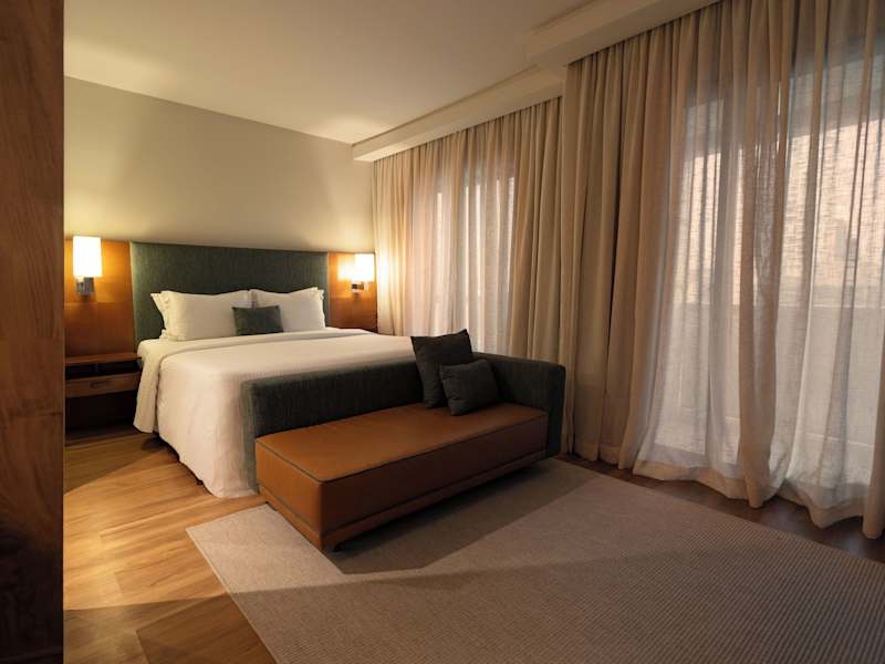 In den Zimmern gibt es eine Klimaanlage und die meisten Zimmer verfügen über einen Balkon. Jedes Zimmer kommt mit einem Doppelbett oder einem Kingsize-Bett sowie separaten Schlafzimmern. Ein Zustellbett kann gegen Gebühr reserviert werden. Ausserdem stehen ein Safe, eine Minibar und ein Minikühlschrank zur Verfügung. Zu den Annehmlichkeiten gehören ein Telefon mit Direktwahl, ein TV-Gerät mit Satelliten-/Kabelempfang und WiFi (gegen Gebühr). Die Badezimmer sind mit Dusche und Badewanne ausgestattet. Kosmetikartikel, Haartrockner und Bademäntel werden bereitgestellt.