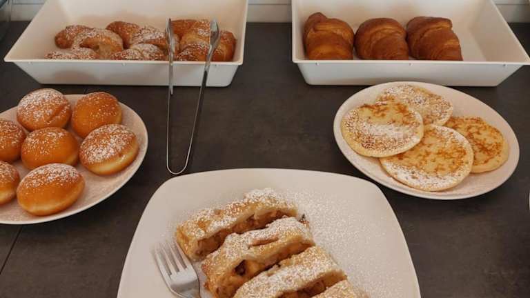 Ein reichhaltiges Frühstück wird in Form eines Buffets in der Unterkunft angeboten, um den Gästen einen energiereichen Start in den Tag zu ermöglichen.