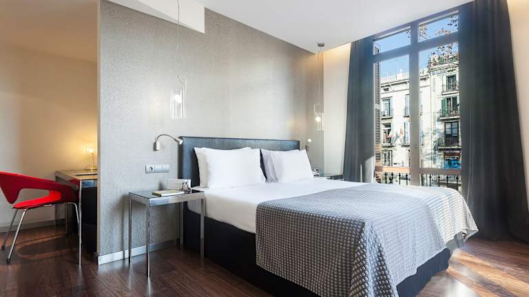 Das Hotel befindet sich in Barcelona, direkt an den berühmten Las Ramblas, im historischen, kommerziellen und touristischen Herzen der Stadt. In der Nähe sind das Barrio Gotico, die Kathedrale und der Plaza Catalunya. Der Sandstrand liegt ca. 3 km entfernt, und der Internationale Flughafen Barcelona befindet sich rund 16 km vom Hotel entfernt.
