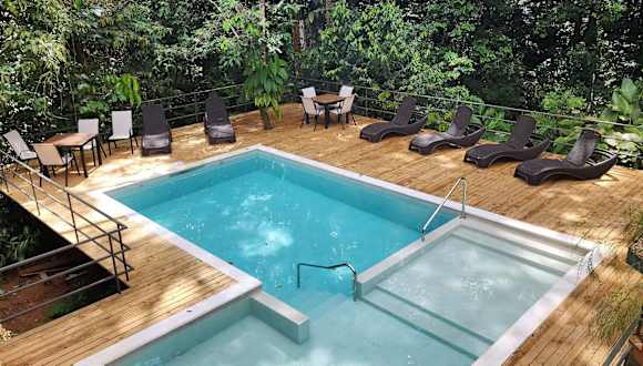 Das Hotel Evasión befindet sich in Ojochal, 2 km von der Playa Tortuga entfernt, und ist gut erreichbar über die Avenida Ojochal. In der Nähe finden sich Sehenswürdigkeiten wie das Alturas Wildlife Sanctuary und die Nauyaca-Wasserfälle. Der Flughafen La Managua ist 74 km entfernt.