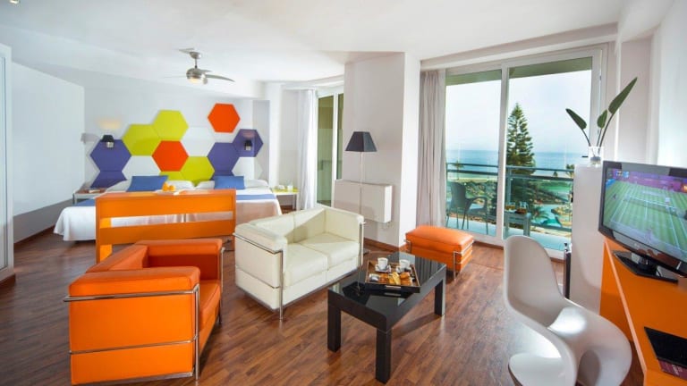 Die Zimmer im Evenia Zoraida Resort sind klimatisiert und verfügen über einen eigenen Balkon mit Blick auf das Meer. Die Zimmer sind modern eingerichtet und bieten ein komfortables Doppelbett. Zur Ausstattung gehören ein Flachbild-Sat-TV, eine Klimaanlage, ein Kühlschrank und ein eigenes Badezimmer.