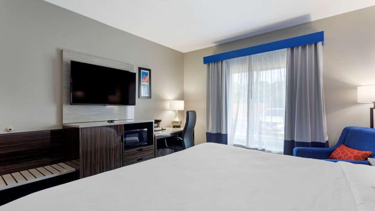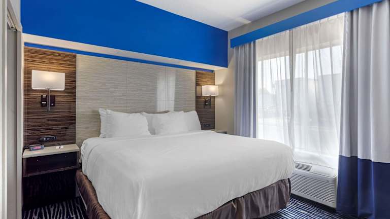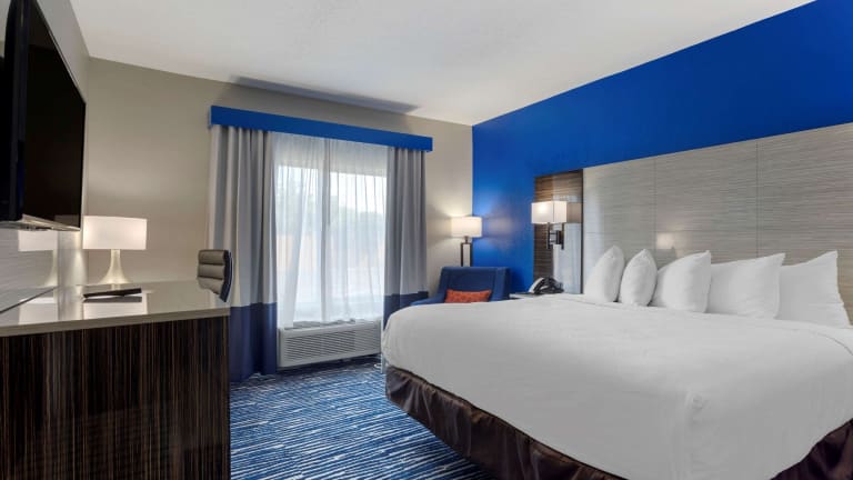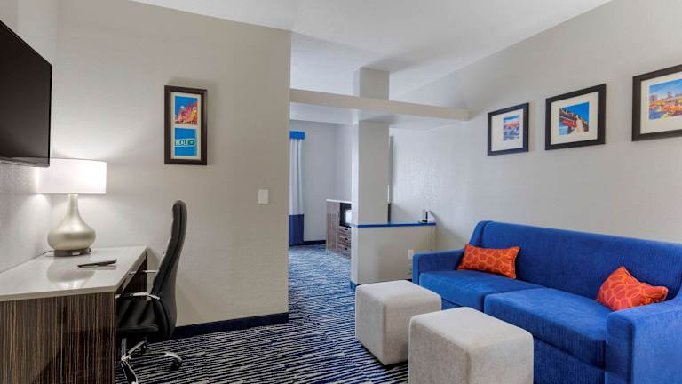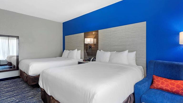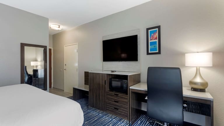 Die Zimmer sind mit einer Kaffeemaschine, einem Sitzbereich und einem Schreibtisch ausgestattet. Kabel-TV mit HBO ist ebenfalls vorhanden, und einige Zimmer verfügen über eine Whirlpool-Badewanne im Zimmer.