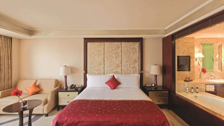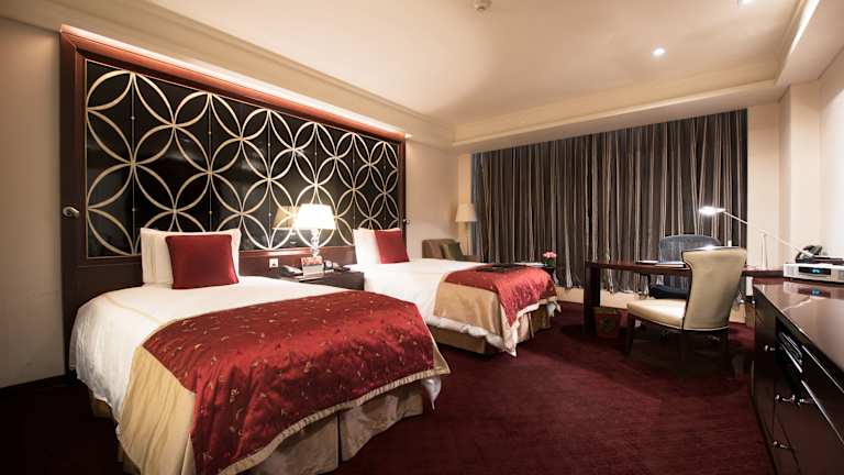 Die Zimmer sind mit Klimaanlage, individuell regelbarer Heizung, Teppichböden und einem Doppel- oder Kingsize-Bett ausgestattet. Zudem stehen ein Safe, Minibar, Schreibtisch und Tee- bzw. Kaffeekocher zur Verfügung. Die Badezimmer verfügen über Dusche und Badewanne, inkl. Haartrockner und Bademäntel. Es sind sowohl Nichtraucher- als auch Raucherzimmer vorhanden, auch rollstuhlgerechte Zimmer mit barrierefreien Bädern.