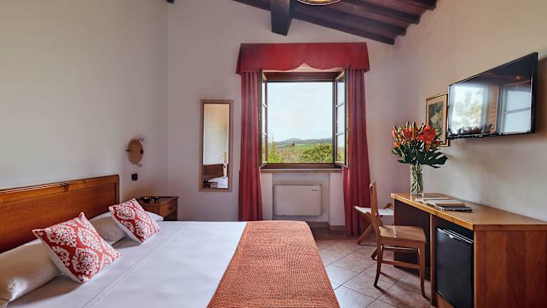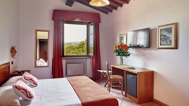 Das Hotel Fattoria Belvedere bietet eine Vielzahl von Unterkünften in umgebauten Bauernhofgebäuden. Jede Unterkunft ist im rustikalen Landhausstil gestaltet und verfügt über eine Klimaanlage für zusätzlichen Komfort. Zu den verschiedenen Einrichtungen des Hotels gehören ein Fitnessraum, ein Tennisplatz und ein großer Außenpool, in dem Sie sich an warmen Tagen abkühlen können.