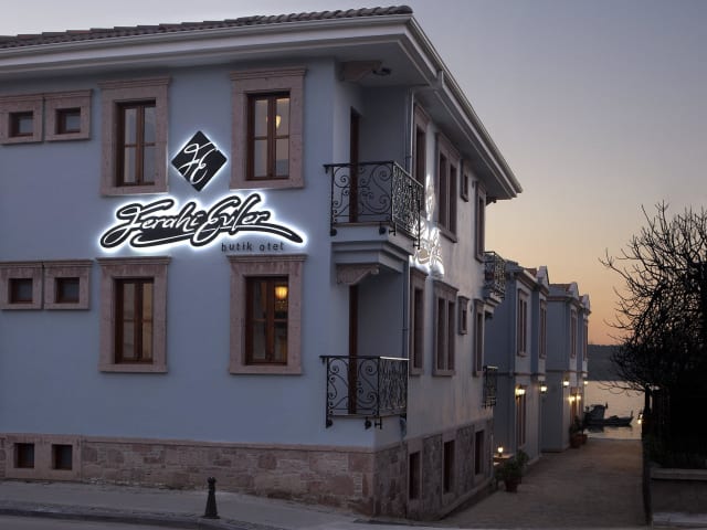 Das Ferahi Evler Hotel in Ayvalık bietet eine privilegierte Lage direkt am Meer und bezaubernde Unterkünfte mit kostenfreiem WLAN und herrlichem Blick auf die Ägäis. Das komplett rauchfreie Hotel überzeugt mit hellen Zimmern, ausgestattet mit Holzböden, Flachbild-Sat-TV und Minibar. Das private Badezimmer ist modern eingerichtet und verfügt über einen Haartrockner. Im hoteleigenen Restaurant können Sie sich am Frühstücksbuffet stärken und die Bar lockt den ganzen Tag über mit erfrischenden Getränken. Das Ferahi Evler Hotel befindet sich in unmittelbarer Nähe des Busbahnhofs Ayvalik und das Stadtzentrum erreichen Sie bequem zu Fuß in nur 10 Minuten. Kostenlose Parkplätze stehen am Hotel zur Verfügung.