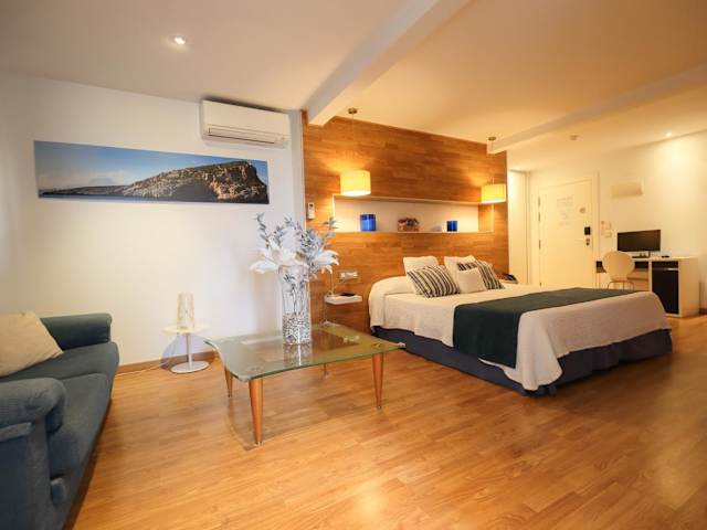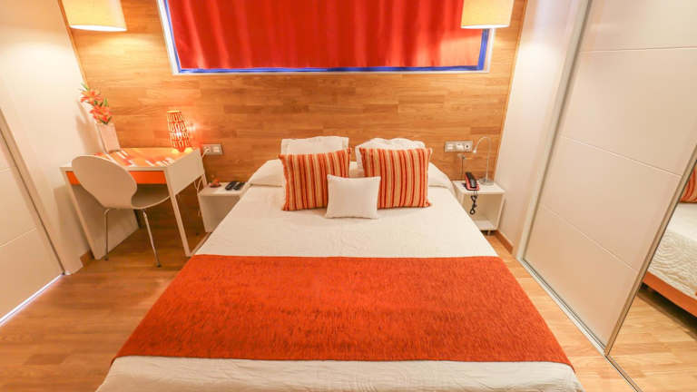 Die Zimmer im Hotel Fetiche sind minimalistisch gestaltet mit Holzböden, weissen Wänden und modernen Fotos von Benidorm. Jedes Zimmer verfügt über eine Klimaanlage, einen Safe und eine Minibar.
