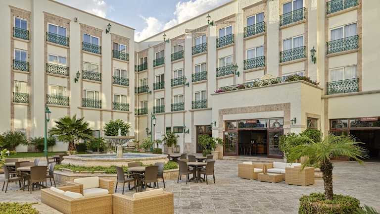 Das Hotel Fiesta Americana Aguascalientes ist im Kolonialstil eingerichtet und bietet eine Vielzahl von Annehmlichkeiten, darunter einen Aussenpool, einen schönen Garten sowie einen Spielplatz. Es umfasst insgesamt 192 Zimmer und ermöglicht Gästen, das Fahrzeug auf dem Parkplatz abzustellen. Zur Ausstattung gehören eine 24 Stunden besetzte Rezeption, ein Sicherheitsdienst, ein Zimmerservice sowie ein Business-Center. Das Hotel legt Wert auf behindertengerechte Einrichtungen, darunter rollstuhlgerechte Zimmer und Zugänge.