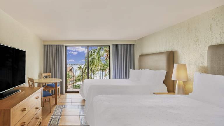 Die Zimmer sind klimatisiert und verfügen über einen Balkon oder eine Terrasse mit Meerblick. Jedes Zimmer bietet ein Doppelbett, ein Sofabett, eine Minibar, einen Safe sowie ein Badezimmer mit Dusche und Badewanne. Zudem sind eine Mikrowelle, ein Kaffee- und Teezubereiter, ein TV-Gerät mit Satellitenempfang sowie kostenloses WiFi vorhanden. Es sind auch rollstuhlgerechte Zimmer buchbar.