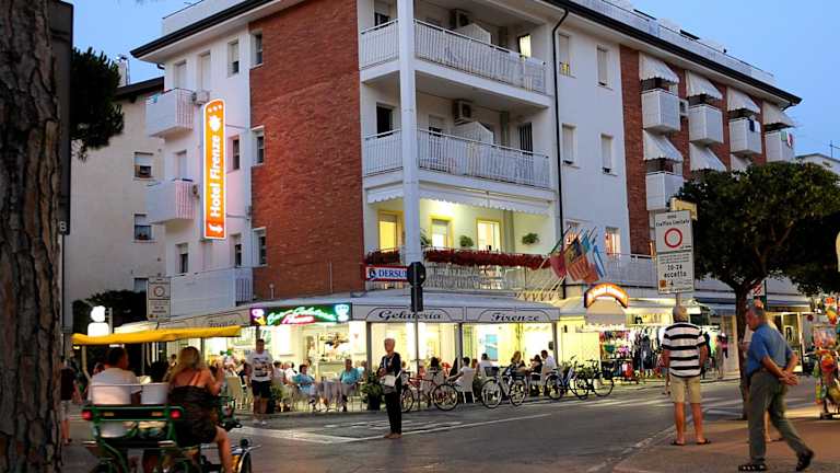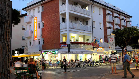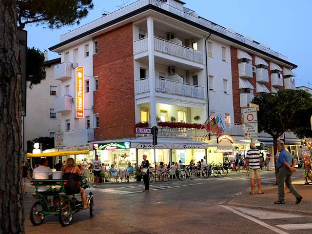 Das Hotel Firenze befindet sich nur 50 Meter vom kostenfreien Privatstrand entfernt, in einer ruhigen Gegend. Jesolo, bekannt für seine lebhaften Diskotheken, liegt etwa 31 Kilometer entfernt. Der Flughafen Venedig ist in einer einstündigen Autofahrt gut erreichbar.