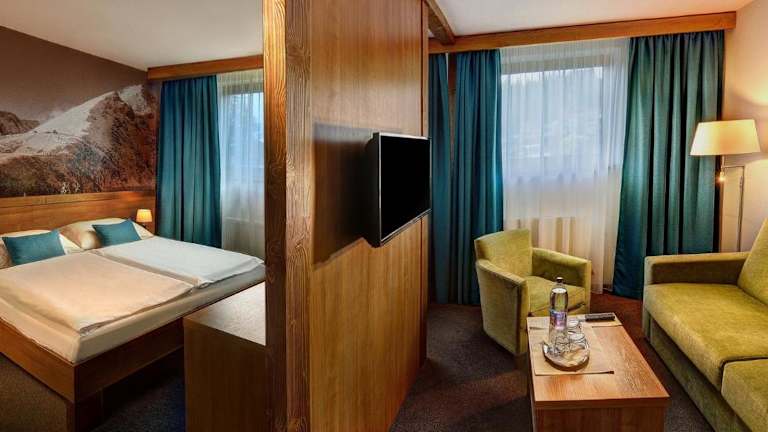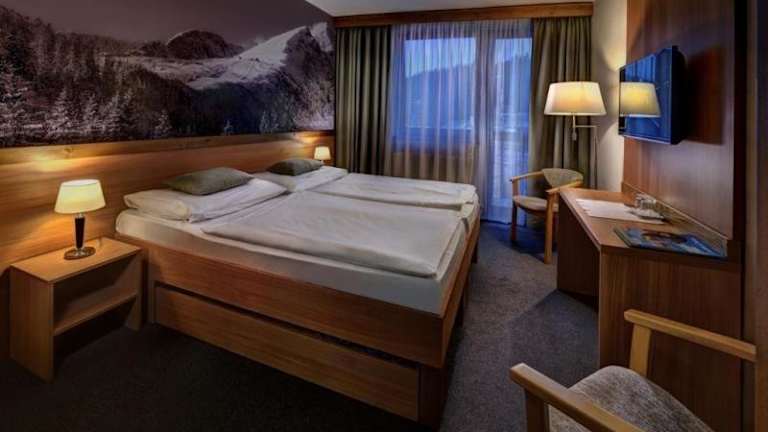 Das Hotel befindet sich in der wunderschönen Umgebung von Štrbské Pleso, direkt unter den Tatragipfeln von Solisko und Patria. Die Talstation des Solsikoexpress und die Skisprungschanze liegen in unmittelbarer Nähe. Es befindet sich im Naturschutzgebiet, am Wald und direkt an der Skipiste, auf einer Höhe von 1400 m. Die Entfernung zum Flughafen Letisko Poprad - Tatry beträgt ca. 26 km, während der Bahnhof Štrbské Pleso ca. 1300 m entfernt ist.