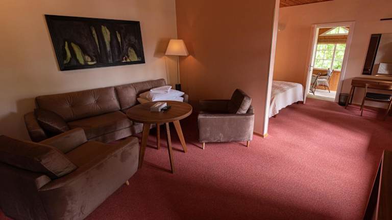 Das Vila Flora Hotel liegt nur 100 m vom Kurischen Haff und 1,2 km von der Ostsee entfernt. Die zentrale Lage im Stadtzentrum von Juodkrante ermöglicht es Ihnen, die umliegenden Sehenswürdigkeiten und den Jachthafen bequem zu erkunden. Der internationale Flughafen Palanga ist 45 km entfernt und Klaipeda ist 18 km entfernt. Bahn-, Bus- und Fährverbindungen sind ebenfalls verfügbar.