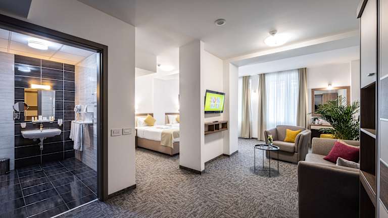 Das Hotel liegt einen kurzen Spaziergang vom Zentrum von Vrnjačka Banja entfernt. Entfernungen: ca. 35 km zum Flughafen, ca. 100 m zum Stadtzentrum, ca. 13 km zu den Skipisten und ca. 1,5 km zum Bahnhof.