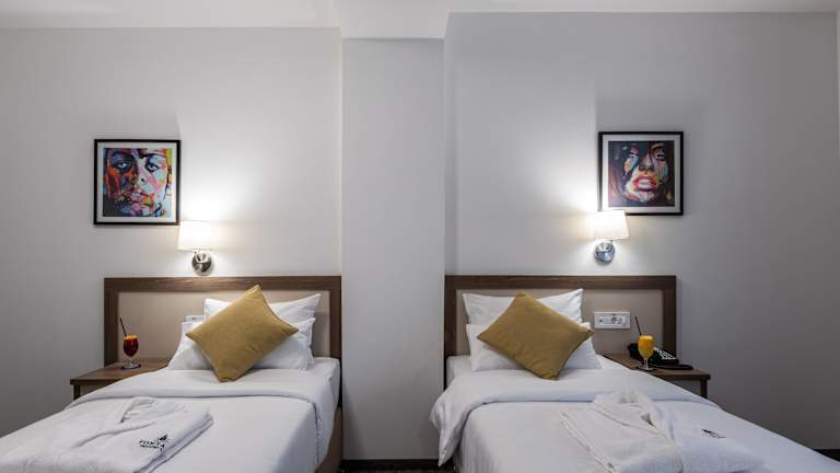 Die Zimmer sind mit Klimaanlage und Heizung ausgestattet und bieten ein angenehmes Raumklima. Es stehen verschiedene Bettarten zur Verfügung, darunter Doppel-, Queen- und Kingsize-Betten sowie Sofabetten. Ausserdem gibt es eine Minibar, einen Safe und einen Schreibtisch. Zur Ausstattung gehören ein Telefon, ein TV-Gerät mit Satelliten-/Kabelempfang und kostenfreies Wifi. Die Badezimmer sind mit Dusche, Haartrockner und Bademänteln ausgestattet. Familien- und Nichtraucherzimmer sind verfügbar.