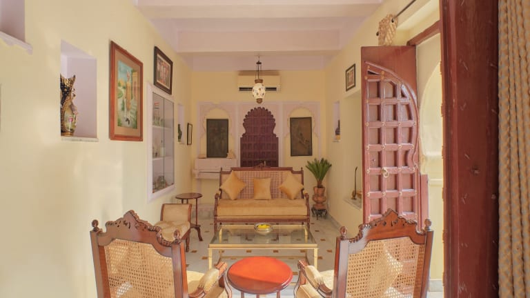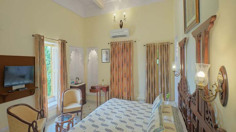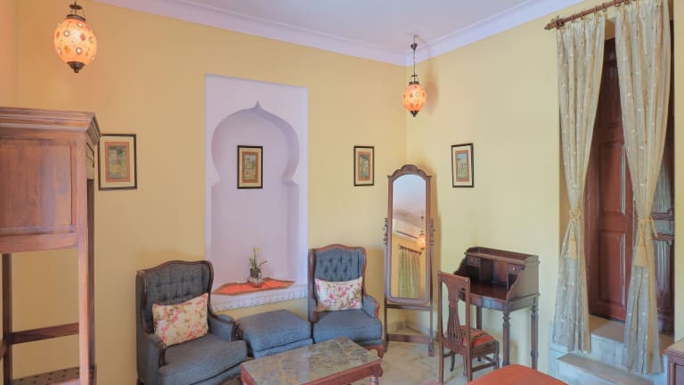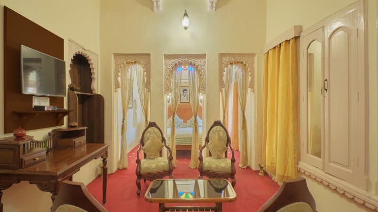 Das Fort Dhariyawad Heritage Hotel Udaipur in Lasadia ist eine charmante Unterkunft mit 12 klimatisierten Zimmern und einem Außenpool. Das Hotel bietet kostenfreies WLAN und ein inbegriffenes Frühstücksbuffet. Die Mitarbeiter sind rund um die Uhr für Sie da und es gibt kostenlose Parkplätze. Genießen Sie den schönen Ausblick von der Terrasse oder dem Garten.
