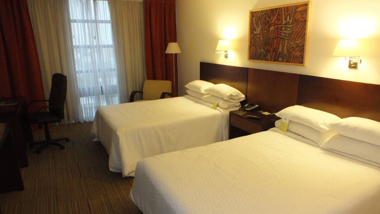 Das Hotel Four Points by Sheraton Montevideo verfügt über 135 Zimmer und 9 Junior-Suiten, die sich auf 10 Etagen verteilen. Die Rezeption ist rund um die Uhr besetzt und bietet Flexibilität beim Ein- und Auschecken. Zur Ausstattung gehören eine Garderobe, ein Safe, eine Wechselstube, Zimmerservice, Wäscheservice, sowie 7 Konferenzräume und ein Businesscenter. Zudem stehen eine Parkiermöglichkeit in Form einer Garage und eines Parkplatzes zur Verfügung.