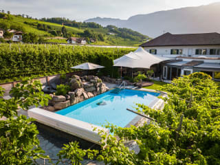 Unser Garten ist Schwimmbad und Spaßplatz und Lounge-Ecke in Einem. Tennisspielen, Boccia werfen, Sonne liegen, Seele baumeln lassen. Repeat. So ein bisschen all‘italiana. Und ringsum grünt‘s und blüht‘s und duftet‘s nach Sommerfrüchten, Kräutern – und nach Urlaubsgefühl. Danach ganz besonders. Im Garten des Hotel Frangart Ausgleich finden mit: •Liegewiese •Outdoor-Pool •Lounge-Ecke mit Tischen und Stühlen •Tennisplatz •Bocciabahn •Tischtennis •Obstbäume für Fruchtgenuss