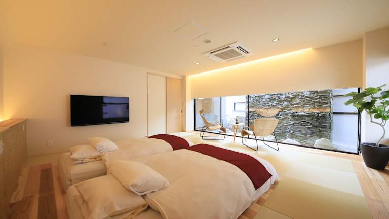 Die gut ausgestatteten Suiten verfügen über ein eigenes Thermalquellenbad (Onsen) im Freien. Jede Suite ist mit einem Flachbild-Kabel-TV, einem DVD-Player sowie einer Badewanne und einem Haartrockner im eigenen Bad ausgestattet. Massagen sind gegen Aufpreis erhältlich.