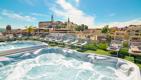 Das Hotel Galant befindet sich in der malerischen Stadt Mikulov, nur 300 Meter vom beeindruckenden Mikulov Schloss entfernt. In der Umgebung gibt es zahlreiche Sehenswürdigkeiten, darunter das Kozí Schloss und die Turold Karst Höhle. Zusätzlich finden Gäste einen natürlichen Badesee sowie das Aqualand Moravia in naher Umgebung.