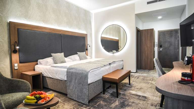 Die Zimmer und Suiten sind mit einem Satelliten-Flachbildfernseher sowie einem gemütlichen Ambiente ausgestattet. Die Bequemlichkeit wird durch eine Ausstattung mit modernen Annehmlichkeiten gewährleistet. Einige Zimmer bieten zudem Zugang zum Wellnessbereich.