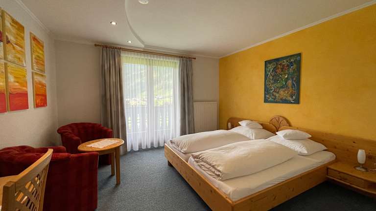 Ihr persönlicher Ferientraum - "Herzlich willkommen bei uns" erholen - genießen - wohlfühlen - ihr idealer urlaubsmix *) Zimmer "de luxe" mit Panormabalkon, Minibar, gratis Internet, etc. *) Familienzimmer mit 2 getrennten Schlafzimmer und Stockbett, Flat-TV, Minibar, etc. Super geeignet für alle Familien bis 4 Personen *) neu renovierte Ferienwohnung "de luxe" mit Panoramabalkon *) neu renovierte Zimmer "comfort" *) Ermäßigung auf Greenfee beim Dolomitengolf Und dazu noch das Highlight für die ganze Familie: *) Motorboot auf unserem Badesee mit Elektromotor für Jung und Alt - ideal zum Fischen, Sonnen oder einfach mal für eine Teichrunde. Erleben Sie ab sofort unsere neu renovierten Zimmer "de luxe": Minibar, Schminktisch, Fön, Panoramabalkon, Sitzecke, Internet, uvm. Im Sommer ist unser Haus durch seine günstige Lage Ausgangspunkt für zahlreiche schöne Wanderungen bzw. Spaziergänge. Der ca. 300 m weit weg gelegene Badeteich steht exklusiv unseren eigenen Hausgästen zur Verfügung. Neben der Entspannung und Erholung können Sie auch die Grill- und Angelmöglichkeiten auf unserer privaten Badelandschaft nutzen. In unmittelbarer Nähe befinden sich gut bürgerliche Restaurants. Am Abend steht Ihnen der Aufenthaltsraum für Spaß und gute Laune zur Verfügung.