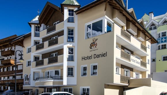 4stern HOTEL DANIEL IM ZENTRUM VON ISCHGL Mitten im Geschehen aber doch im ruhigen Teil von Ischgl verbringen Sie Ihren Skiurlaub im Hotel Daniel in perfekter Umgebung. Die Seilbahnen sind in ca. 2 - 3 Gehminuten leicht zu erreichen, Restaurants, Bars und Shops befinden sich in unmittelbarer Nähe. Genießen Sie den Abend in ruhiger Atmosphäre an unserer Hausbar, oder entspannen Sie in unserem großzügig angelegten Wellnessbereich - für unsere Hausgäste natürlich kostenlos. SILVRETTA CENTER Gönnen Sie sich nach einem aktiven Skitag eine entspannende Massage - das Silvretta Center mit Hallenbad, Kegelbahn und Massageangebot befindet sich direkt gegenüber. KUTSCHENFAHRTEN IN ISCHGL Eine romantische Pferdeschlittenfahrt durch die verschneite Winterlandschaft ist ein toller Kontrast zum aufregenden Treiben in Ischgl. Warm eingepackt erleben Sie die idyllische Seite unseres Dorfes - egal ob am Tag oder am Abend. Ihre Ischgl-Rundfahrt können Sie direkt bei uns im Hotel buchen.