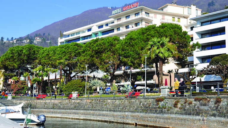 Die Lage des Hotel Garni Geranio au Lac befindet sich auf der herrlichen Locarno-Muralto-Promenade, nur etwa 2 Minuten vom Bahnhof, der Landungsbrücke und dem Stadtzentrum entfernt. Locarno, gelegen am nördlichen Ufer des Lago Maggiore im Tessin, präsentiert sich mit einem milden Klima und südländischem Charme. Es gibt zahlreiche Restaurants und Aktivitäten sowie eine charmante Seepromenade mit subtropischer Vegetation.