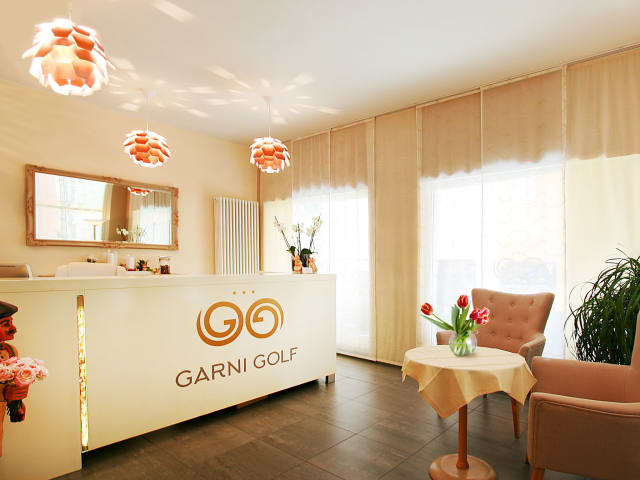 Das Hotel Garni Golf, ein persönlich geführter Familienbetrieb, verfügt über 23 liebevoll eingerichtete Zimmer, 4 gemütliche Apartments im Nebengebäude, einen Frühstücksraum, eine kleine Terrasse zum Innenhof, einen Aufzug und einen Fahrradraum (Hotel-Fahrräder zum Mieten oder als Lagerraum für Ihre eigenen Räder).