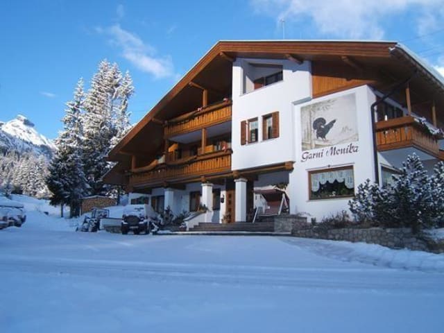 Herzlich willkommen im Garni Monika, Ihr Urlaubshotel in den Dolomiten. Unser Haus liegt 100 Meter von der Portavescovo Seilbahn und Sellaronda Skigebiet auf sonnigem Südhang im Feriendorf Arabba – Fodom - Buchenstein.