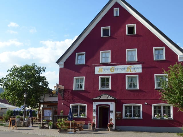 Das familiengeführte 3-Sterne-Hotel Gasthof Krone ist eine hervorragende Unterkunft für einen Wohlfühlurlaub mitten im Naturpark Altmühltal. Die familiäre und sehr persönliche Atmosphäre liegt der Familie Sammiller besonders am Herzen. Der Betrieb wurde im Jahr 2020 mit dem Prädikat HolidayCheck Quality Selection ausgezeichnet und ist als wander- und fahrradfreundlicher Betrieb qualifiziert. Zum Hotel gehört ein gemütliches Restaurant mit großem Biergarten. Zahlreiche Rad- und Wanderwege, wie z.B. der Panoramaweg Altmühltal, führen direkt am Hotel vorbei. Neben Wandern und Radfahren gibt es rund um Kinding zahlreiche Ausflugsmöglichkeiten wie Burgen entdecken, Museen besuchen, am Kratzmühlsee schwimmen, Boot fahren, Minigolfen, Klettern und vieles mehr. Anfang 2017 wurde das Hotel um 14 neue Komfortzimmer und drei Tagungsräume erweitert.