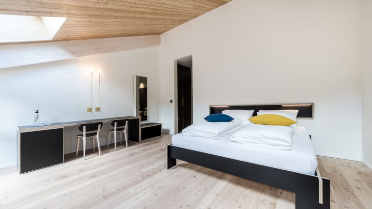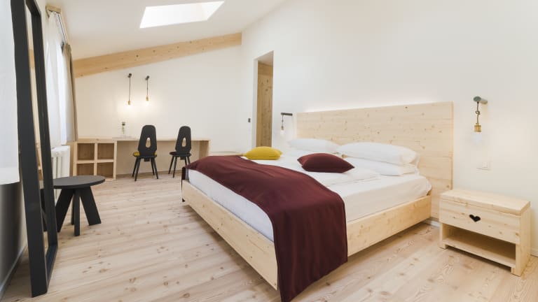 Drei neue Zimmerkategorien greifen die Geschichte des historischen Familienbetriebes Hotel Gasthof zum Hirschen am Nonsberg auf: Spiritualität wird mit Einfachheit, klaren Linien und reduzierter Optik in den Hospizzimmern neu interpretiert. Die Hirschen Zimmer greifen Elemente der Gasthofkultur auf, während in den Designzimmern LUC Raum, Licht und minimalistisches Möbeldesign im Mittelpunkt stehen.