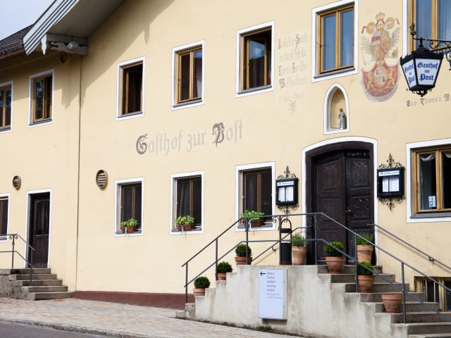 Der familiengeführte Gasthof Zur Post überzeugt durch eine heimelige Atmosphäre und bietet eine sonnige Terrasse sowie Leihvelos für die Gäste.