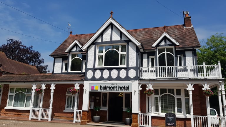 Gatwick Belmont Hotel is just 5 minutes from Gatwick Airport and operates a 24 hour transfer service to Gatwick, collection service from Gatwick Airport is from 9:00 to 21:00. Situated in leafy Horley, the hotel has a traditional pub, free Wi-Fi and a 24-hour front desk. With individual decor and private modern bathrooms, the bedrooms at Gatwick Belmont feature tea/coffee facilities and free toiletries. All rooms also have a TV, radio and free fiber optic WiFi. The Gatwick Belmont restaurant serves traditional British cuisine, featuring fresh local produce. The cosy bar offers beverages and snacks, and a children’s menu is also available. Horley Railway Station is only a 10-minute walk away, offering regular trains to London Victoria. Crawley is a 15-minute drive away, and the M23 motorway can be reached in 5 minutes.