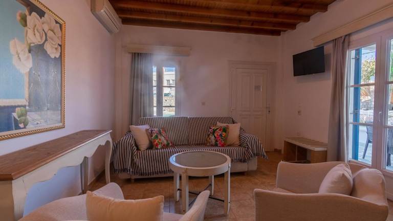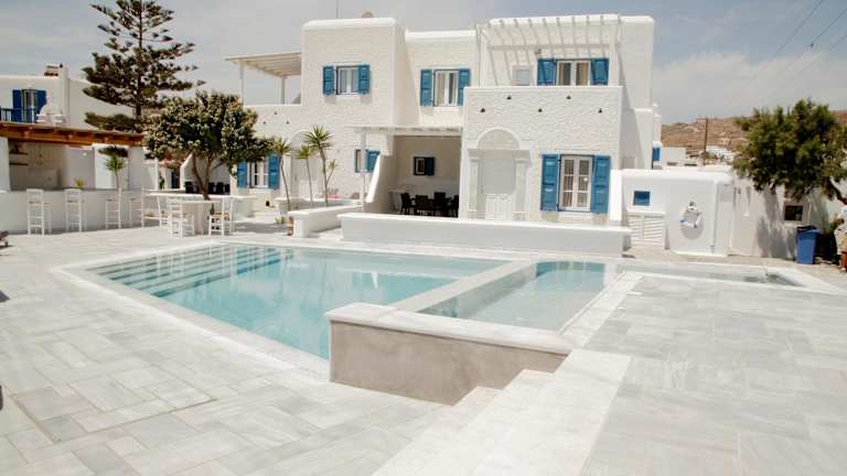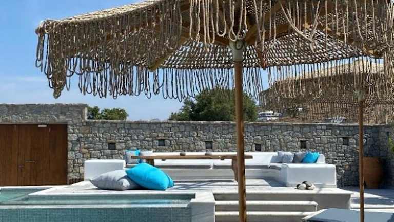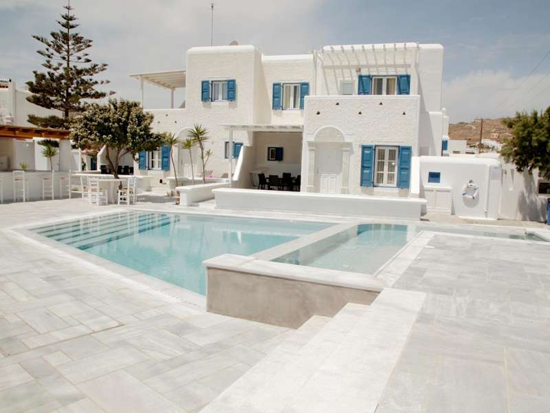 Das Gelos House auf Mykonos ist ein traditionelles Hotel, das nur 5 Minuten vom Strand von Ornos entfernt liegt. Hier erwartet Sie ein erholsamer Aufenthalt mit einem Pool und komfortablen Apartments. Genießen Sie den Meerblick und die Annehmlichkeiten wie TV, Klimaanlage und eine voll ausgestattete Küche. Die Lage des Hotels ist ideal, um die Insel zu erkunden und die berühmten Strände zu besuchen. In der Nähe finden Sie auch Supermärkte, Restaurants und eine Kitesurf-Schule.